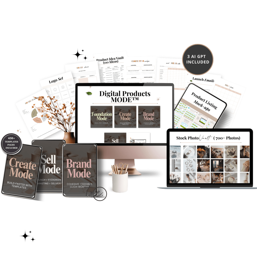 Digital Products Mode™ helps you build and list a sellable digital product in 48 hours using templates + Custom GPTs + ready-to-use messaging even if your audience is tiny, your time is limited.
